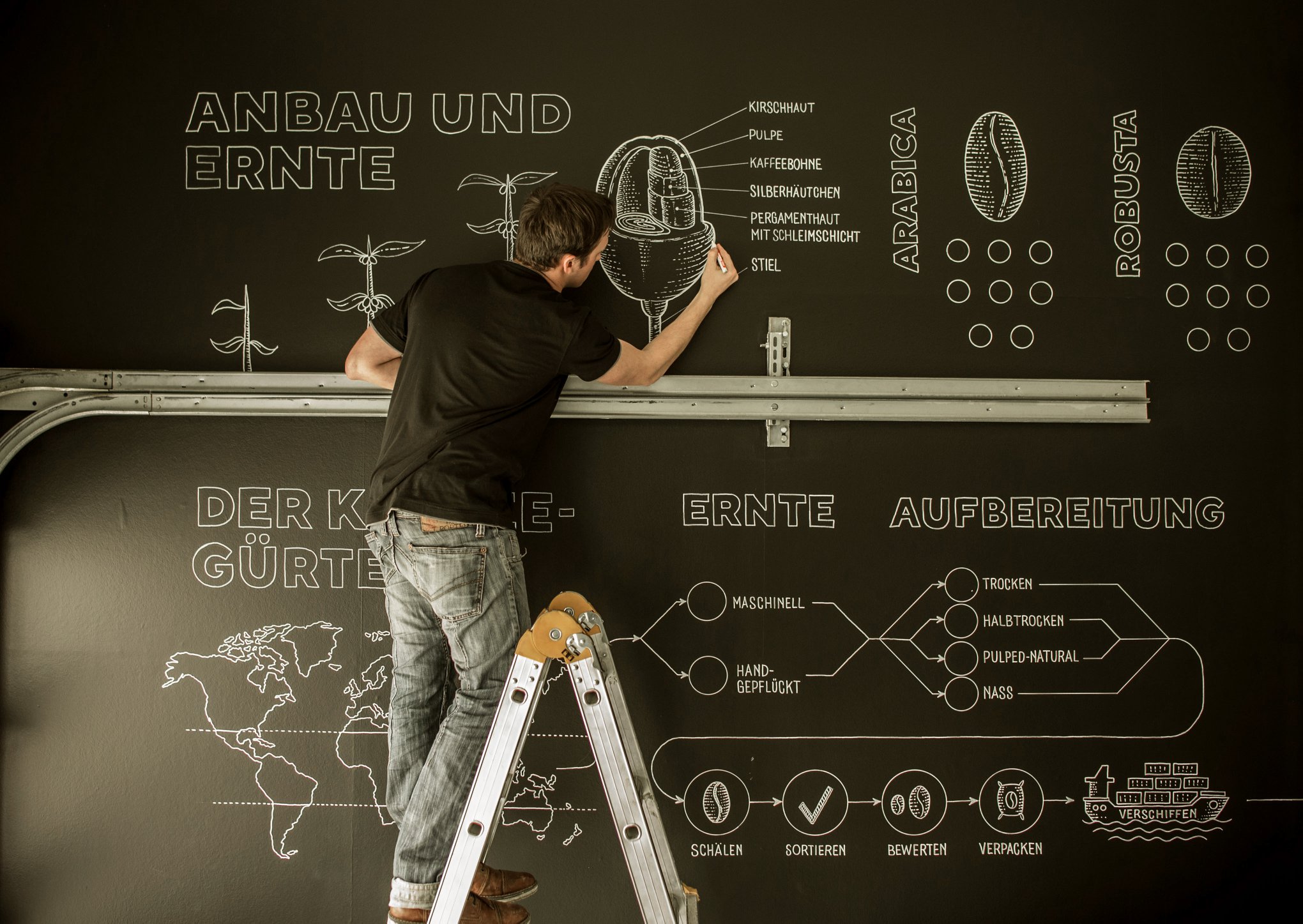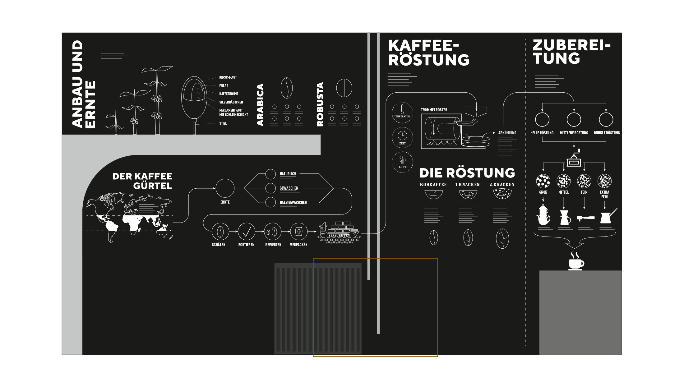 die den Weg des Kaffees vom Anbau bis zum fertigen Produkt aufzeigt.