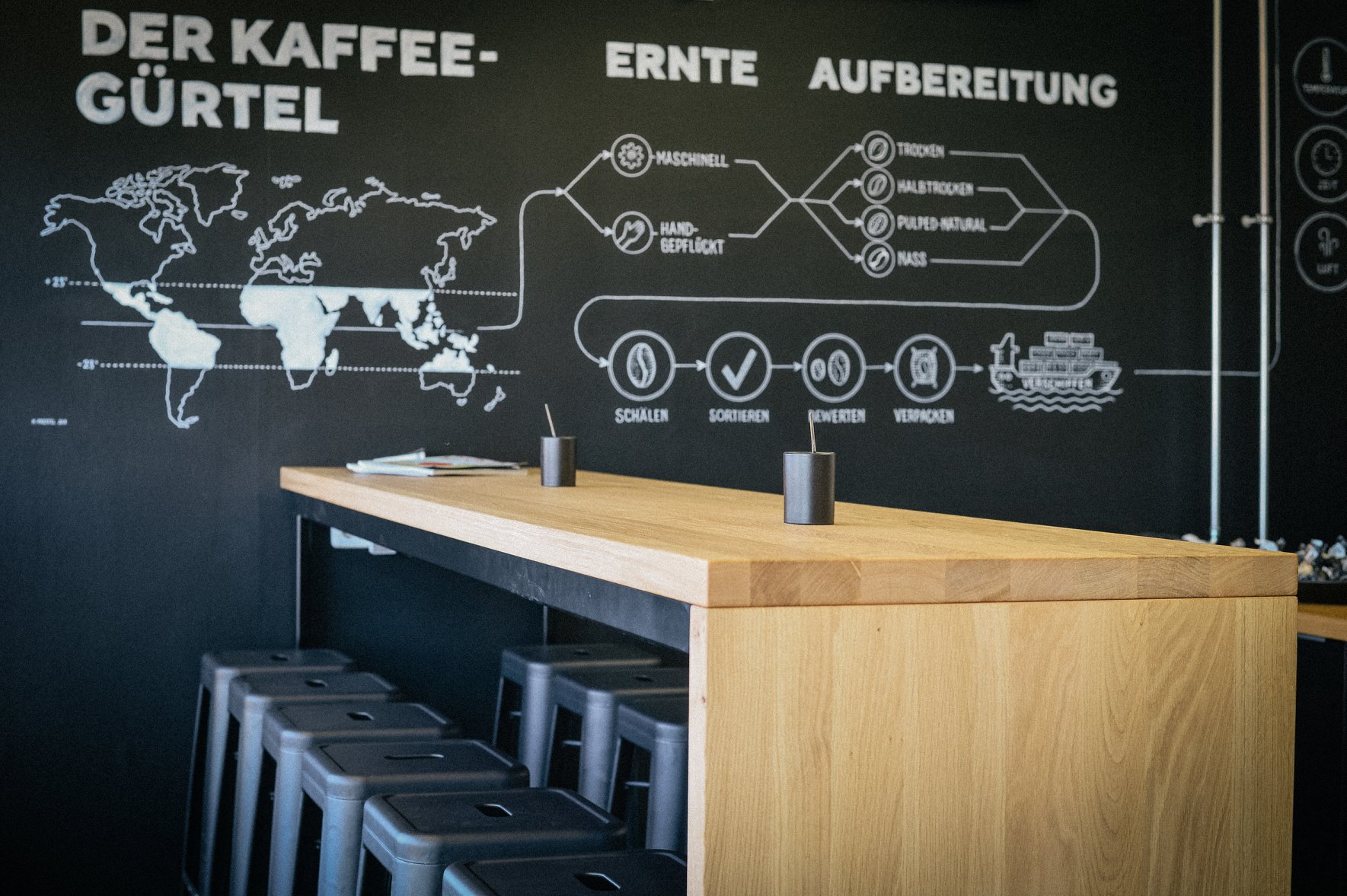 Hier wird der Bohne kein Aroma aufgeröstet, sondern der ureigene Geschmack des Kaffees freigelegt.